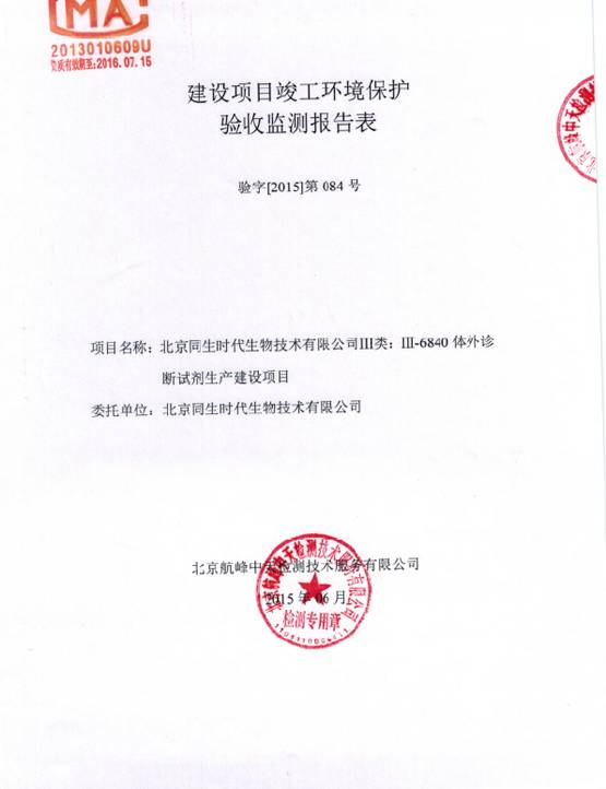 建设项目竣工环境保护验收检测报告表 验字【2015】第084号