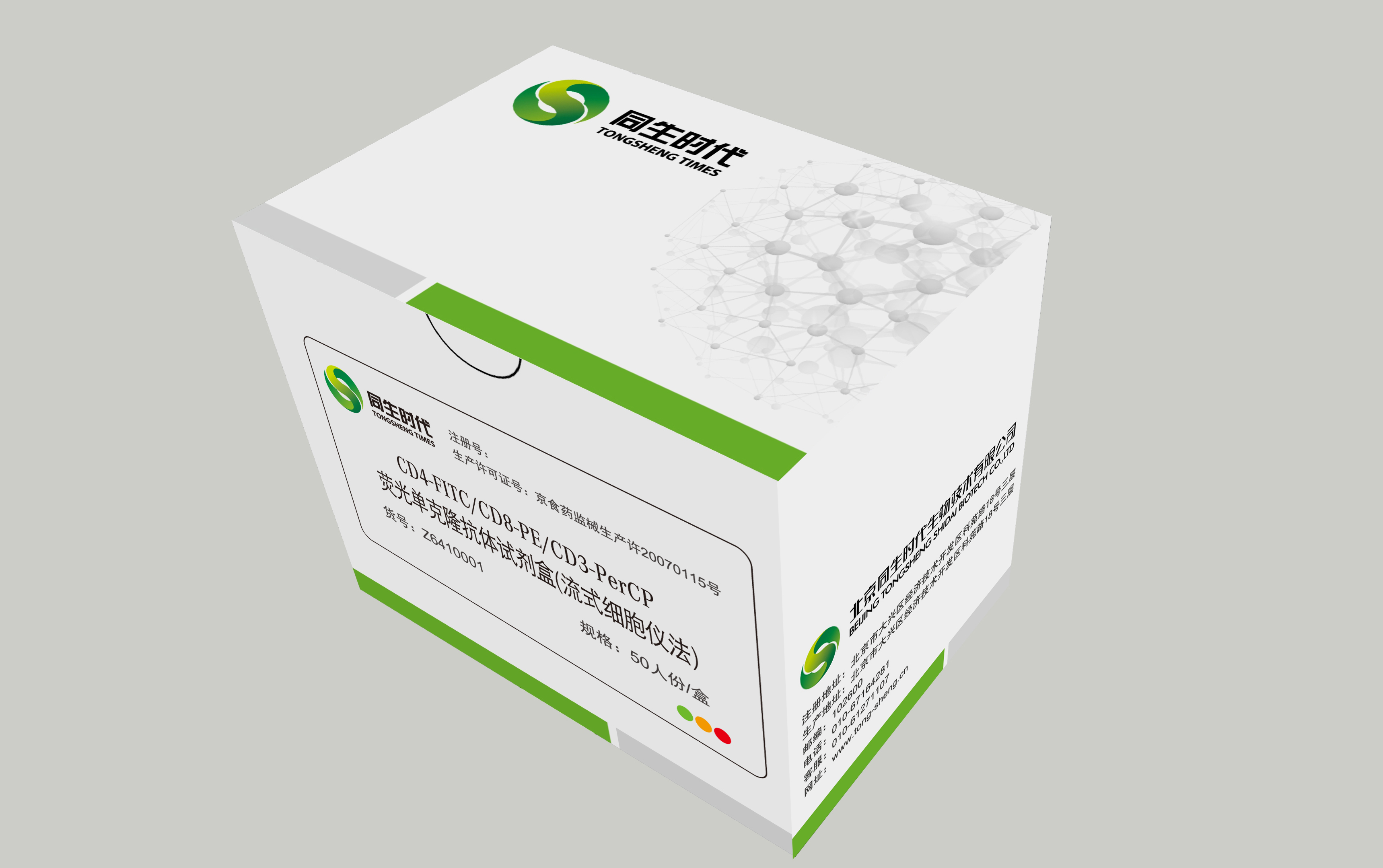 主要组成成分:CD4-FITC/CD8-PE/CD3-PerPC荧光单克隆抗体试剂盒溶于1ml磷酸盐缓冲液,(PH72 含0.2%BSA及1‰Proclin 300)